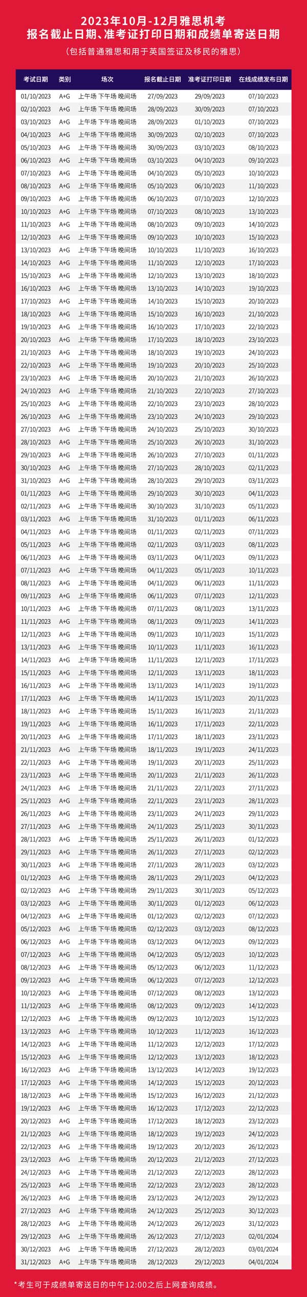 2023年10-12月雅思和用于英國簽證及移民的雅思機(jī)考考試日期