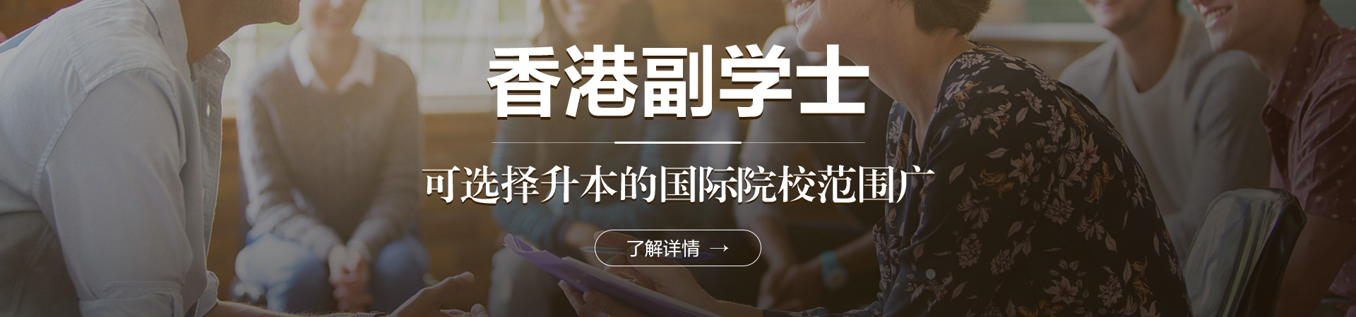 項(xiàng)目詳細(xì)咨詢副學(xué)位是源于美國(guó)和加拿大的學(xué)位等級(jí),由大學(xué)里的相關(guān)學(xué)院提供,相當(dāng)于本科的前兩年,一般分為文科副學(xué)士、理科副學(xué)士。成功修畢兩年副學(xué)士課程的畢業(yè)生,可考慮申請(qǐng)報(bào)讀該校本科或香港其他大學(xué)學(xué)士學(xué)位本科課程三年級(jí),2年即可取得本科學(xué)士學(xué)位。